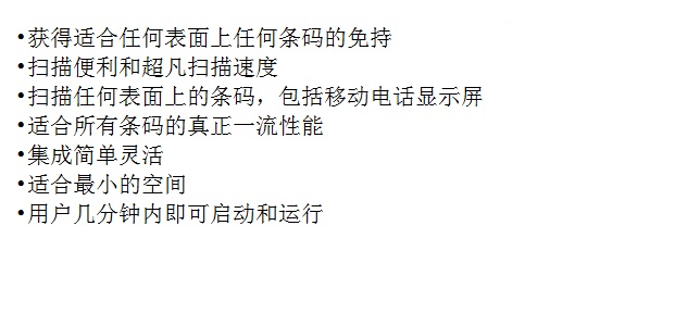 四种模式可满足任何数据采集需求,SR(标准范围)适用中等至大型条码的一维/二维密集型应用,HD(高密度)适用于制造业常见的小而密条码,DL(驾驶证解析)非常适合需要采集驾驶证ID信息的一维/二维应用.DP(直接部件打标)适用于快速采集每种类型的直接部件打标,包括点式打标、激光刻蚀、化学刻蚀、喷墨、印模、浇铸和热喷镀,采集几乎任何表面上的标记,包括金属、橡胶、塑料、玻璃上的标记.