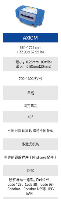 AXIOM系列 高度可靠超大景深全向激光条码阅读器