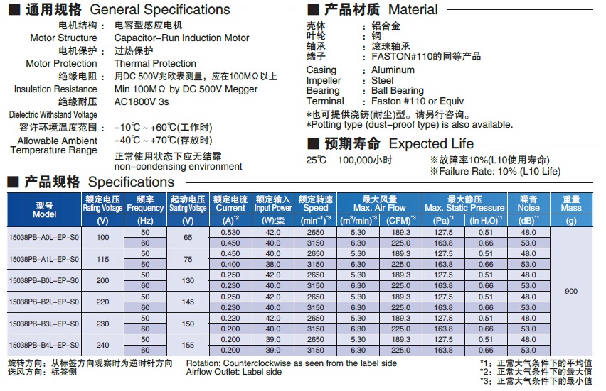 电容型感应电机;电机保护为过热保护;铝合金外壳;