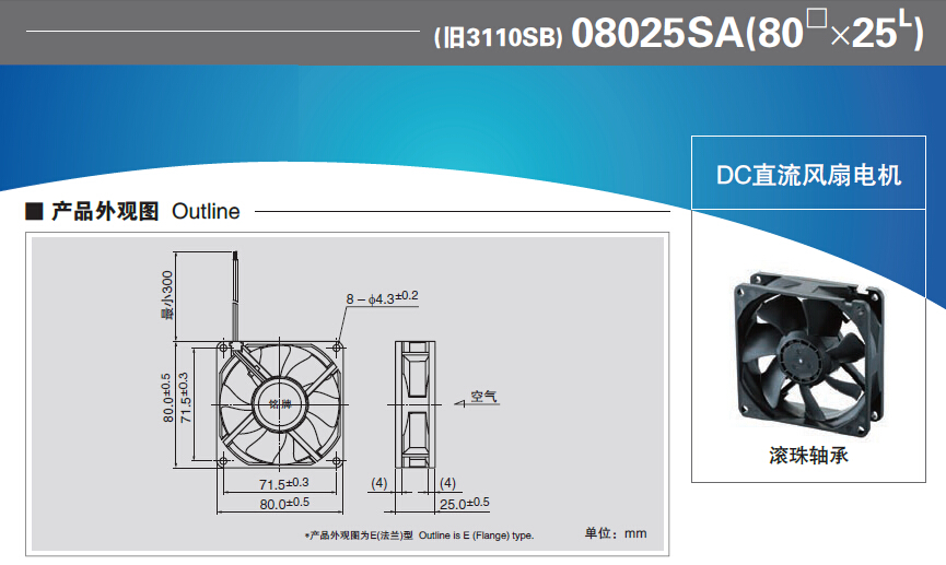 08025SA系列 滚珠轴承型直流风扇电机
