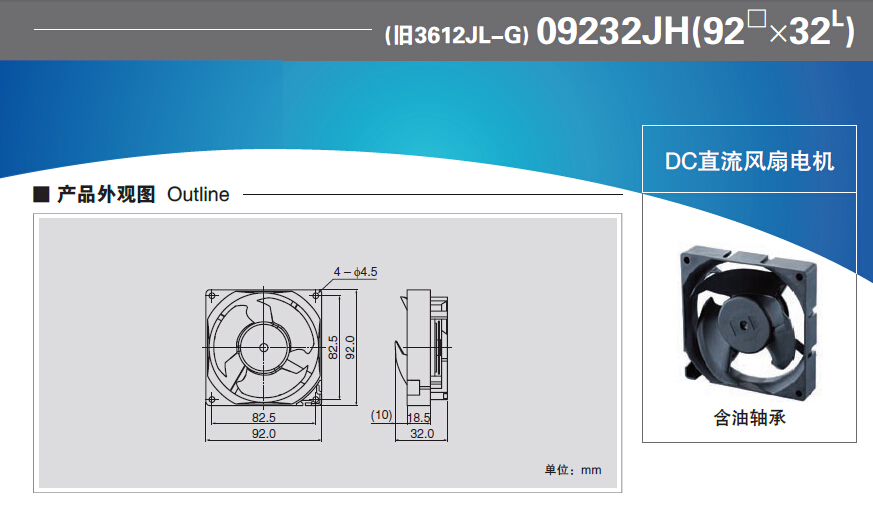 09232JH系列 含油轴承型直流风扇电机