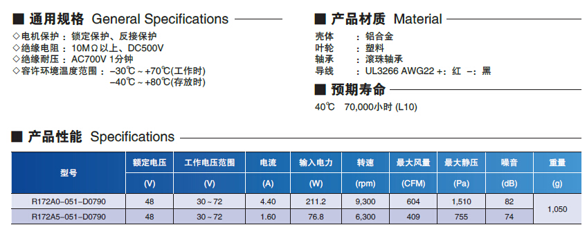 205501/R172A0-051-D0790/R172系列 铝合金壳圆形直流风扇电机