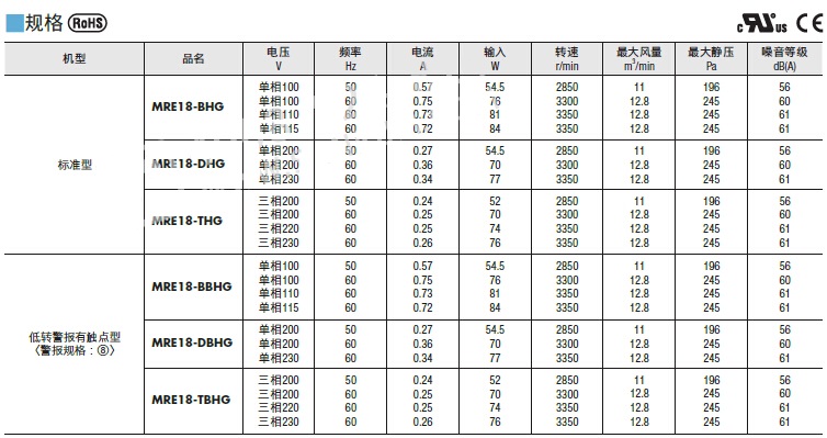 205509/MRE18-BHG/MER18系列 AC长寿型滚珠轴承轴流风扇