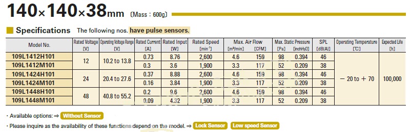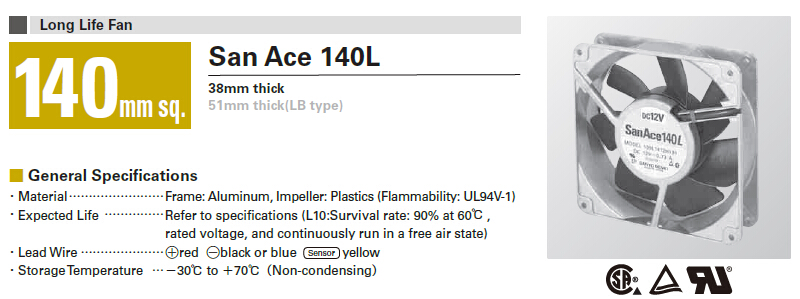 205835/109P1424M101/San Ace 140系列 长寿命直流散热风扇