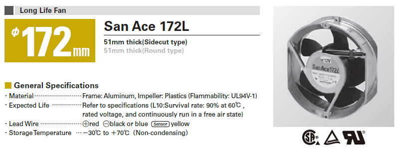 205873/109E1712Y501/San Ace 172系列 长寿命低噪音直流散热风扇