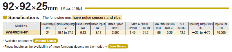 205898/9WF0924H401/San Ace92WF系列 防油型风扇