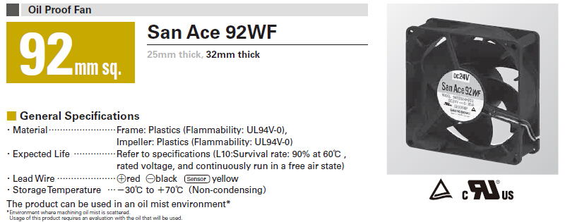 205900/9WF0924H201/San Ace92WF系列 防油型风扇