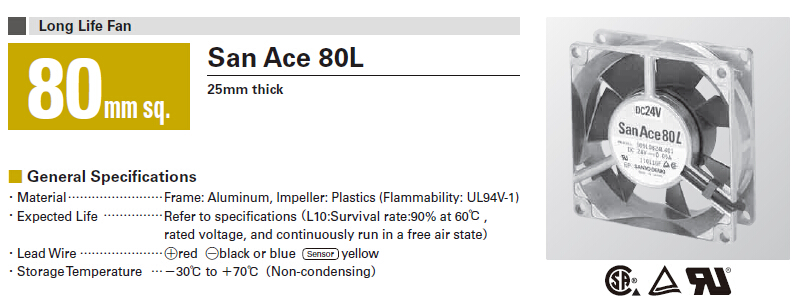 205916/109L0824M401/San Ace 80L系列 长寿命高品质直流散热风扇