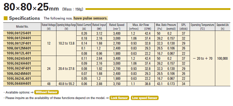 205908/109L0812S401/San Ace 80L系列 长寿命高品质直流散热风扇