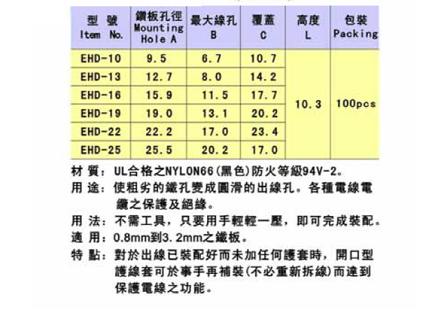 使粗劣的铁孔变成圆滑的线孔.各种电线电缆作为保护和绝缘的用途.对于出线已装配好而未加任何衬套保护时,开口型护线套可於事后再补装(不必重新拆线)而达到保护线的功能.