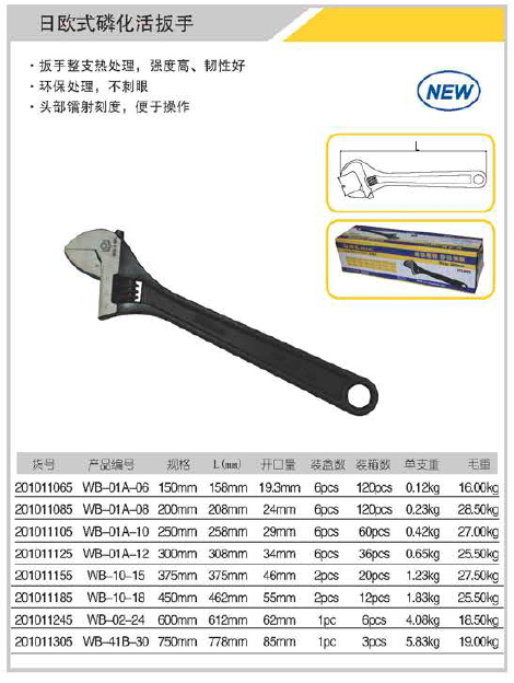 扳手整支热处理,强度高,韧性好,环保处理,不刺眼,头部镭射刻度,便于操作.