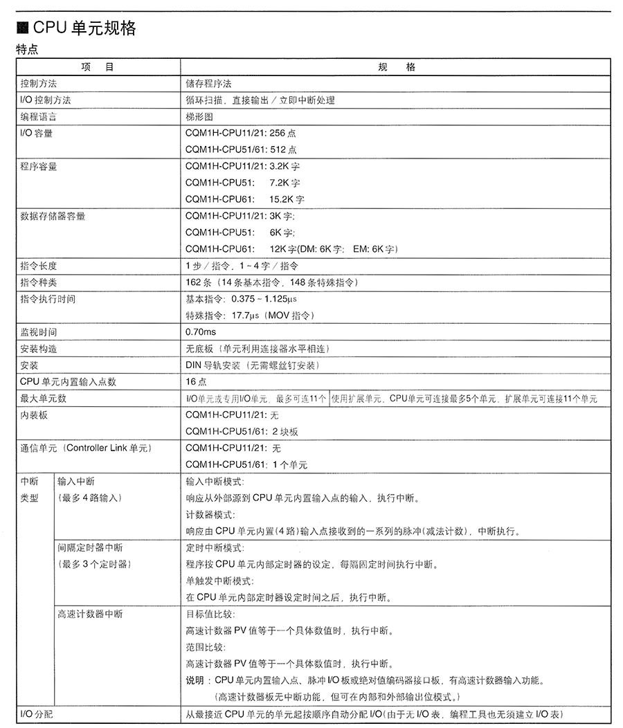 CQM1H是一种功能完善的紧凑型PLC,具有通过各种高级内装板进行升级的能力,大程序容量和存储器单元.
