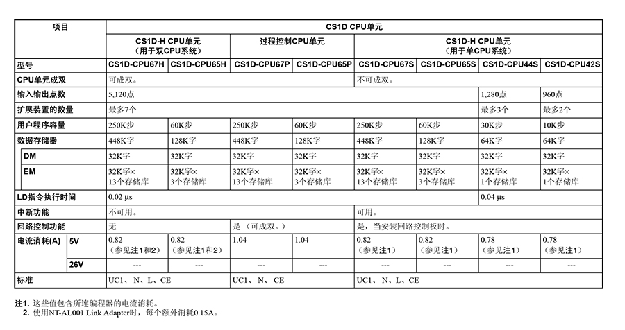 CS1D系列具有双CPU系统、扩展电缆、通信单元