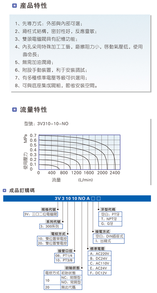 209090/3V310-10-NC-A/电磁阀三口二位3V300系列