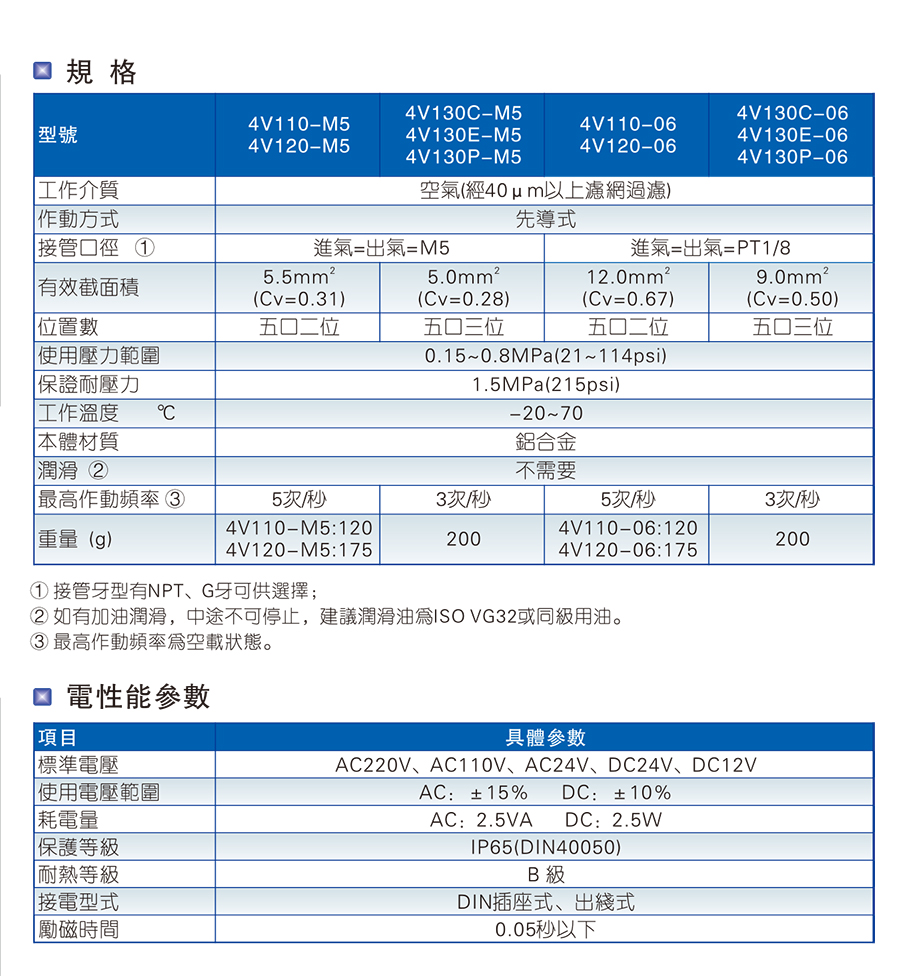 209101/4V130P-06-A/电磁阀五口二位、五口三位4V100系列