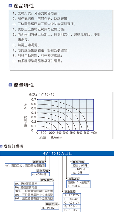 209125/4V430E-15-A/电磁阀五口二位、五口三位4V400系列