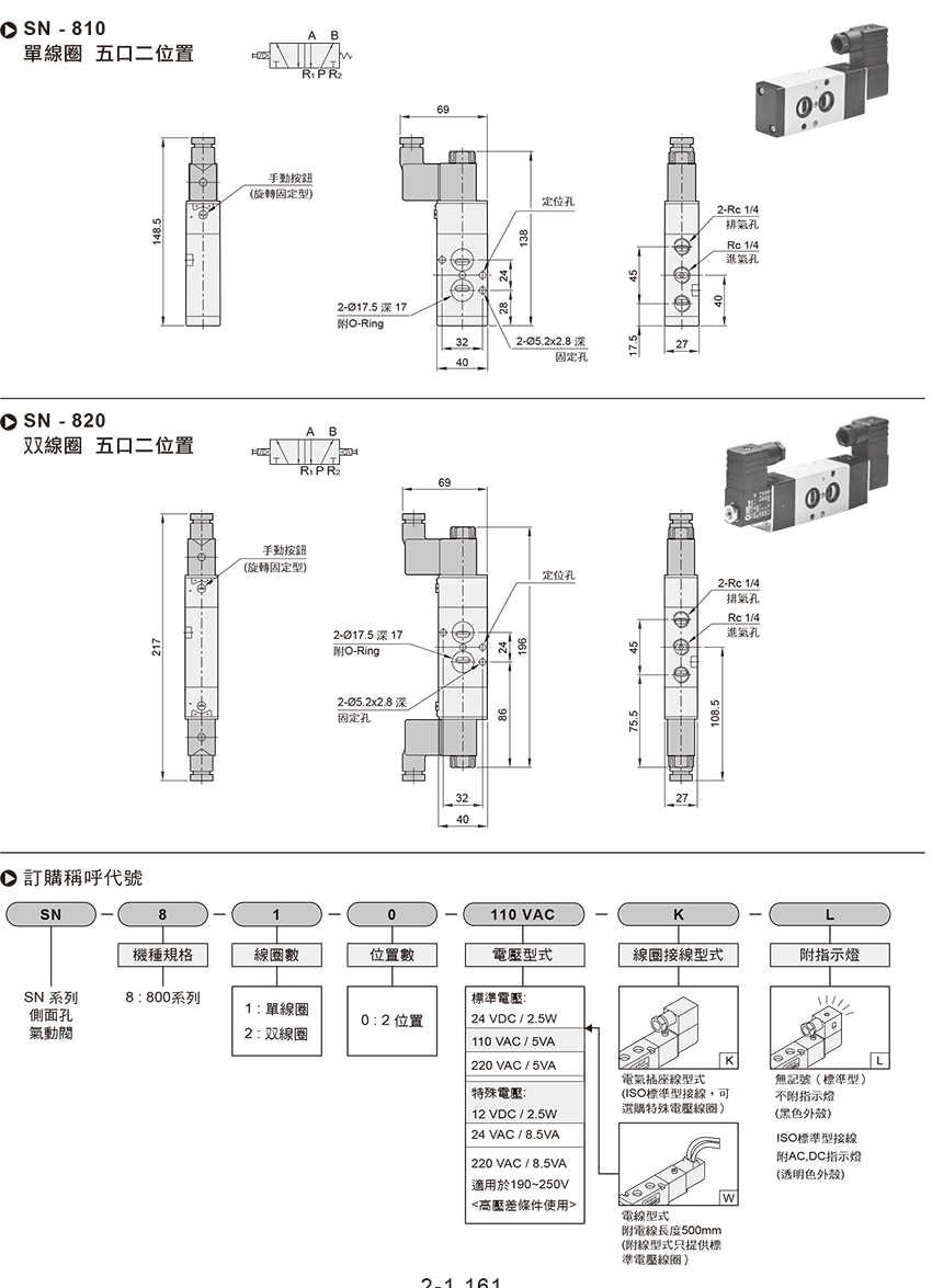 209191/SN-8-2-0-220-K-L/五口二位置电磁阀SN系列