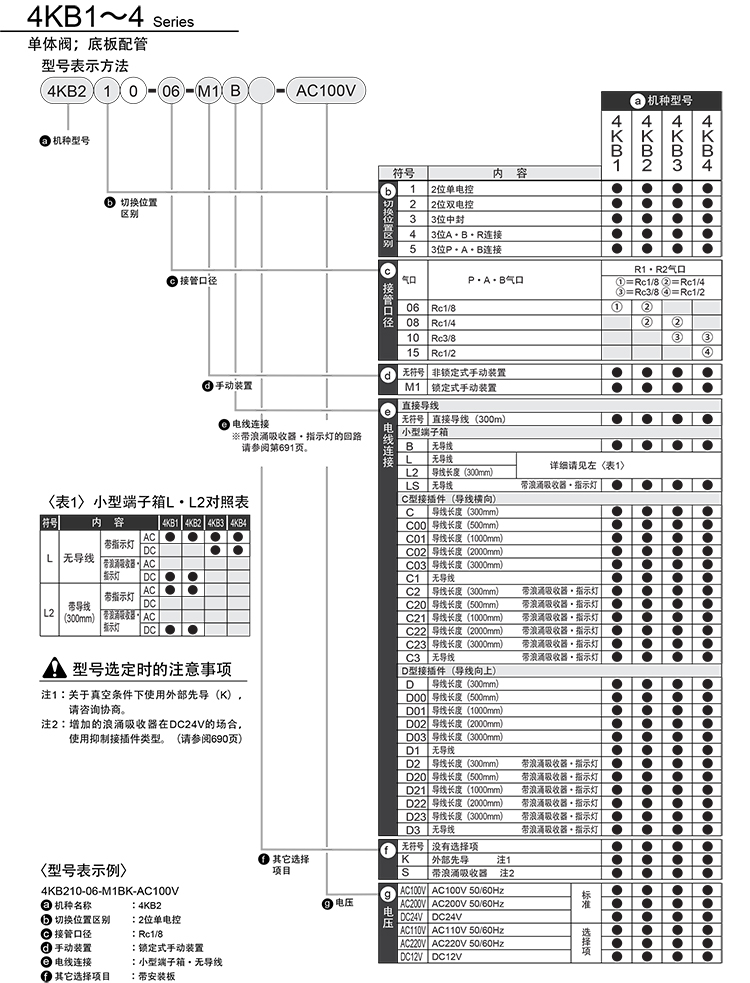 209238/4KB410-15-M1BK-AC100V/单体阀 底板配管 先导式 5通阀Selex阀4KB4