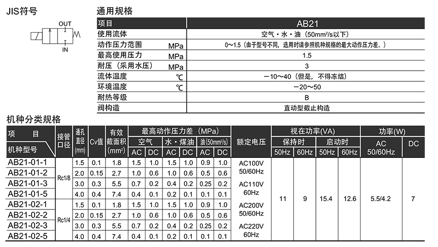 209239/AB21-01-1-A00B-AC100V/直动式2通电磁阀AB21系列