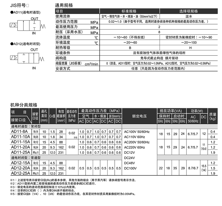 209258/AD11-15A-O3AABGS-AC100V/先导式2通电磁阀AD11系列