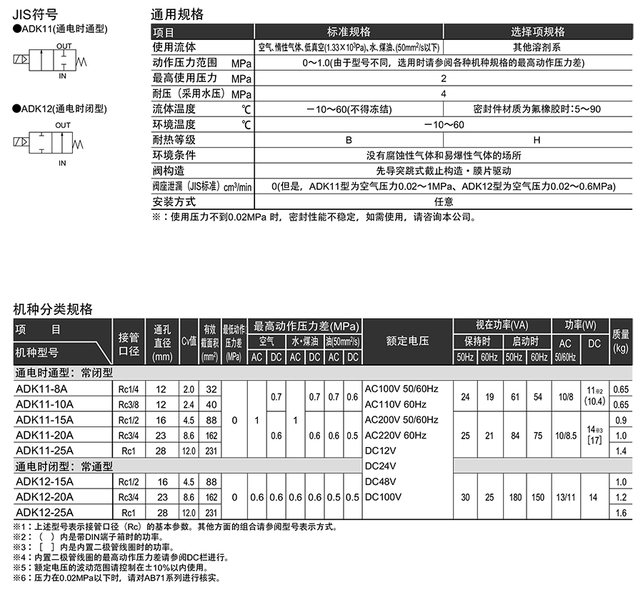 209299/ADK12-15A-O3ABHS-AC100V/先导突跳式2通电磁阀ADK12