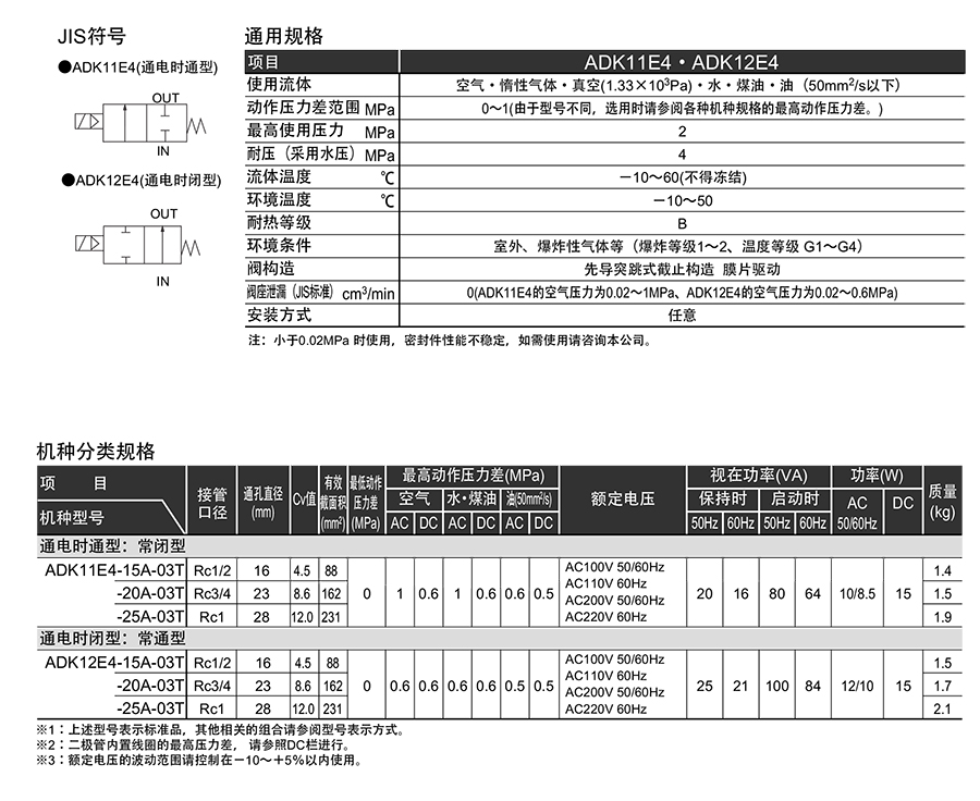 209305/ADK12E4-15A-03T-AC200V/防爆型先导突跳式2通电磁阀ADK12E4系列