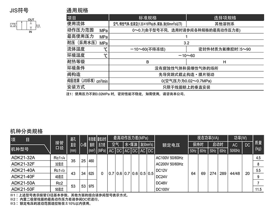 209315/ADK21-40A-O3ADHS-AC100V/先导突跳式2通电磁阀ADK21系列