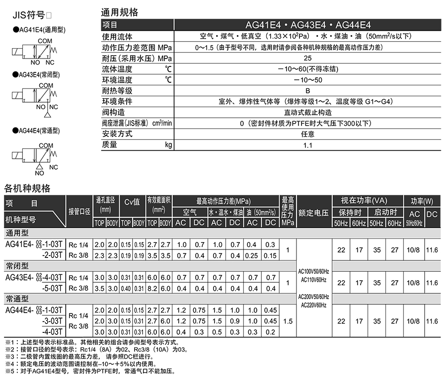 209363/AG43E4-03-5-03TA-AC100V/防爆型 直动式3通电磁阀AG43E4系列