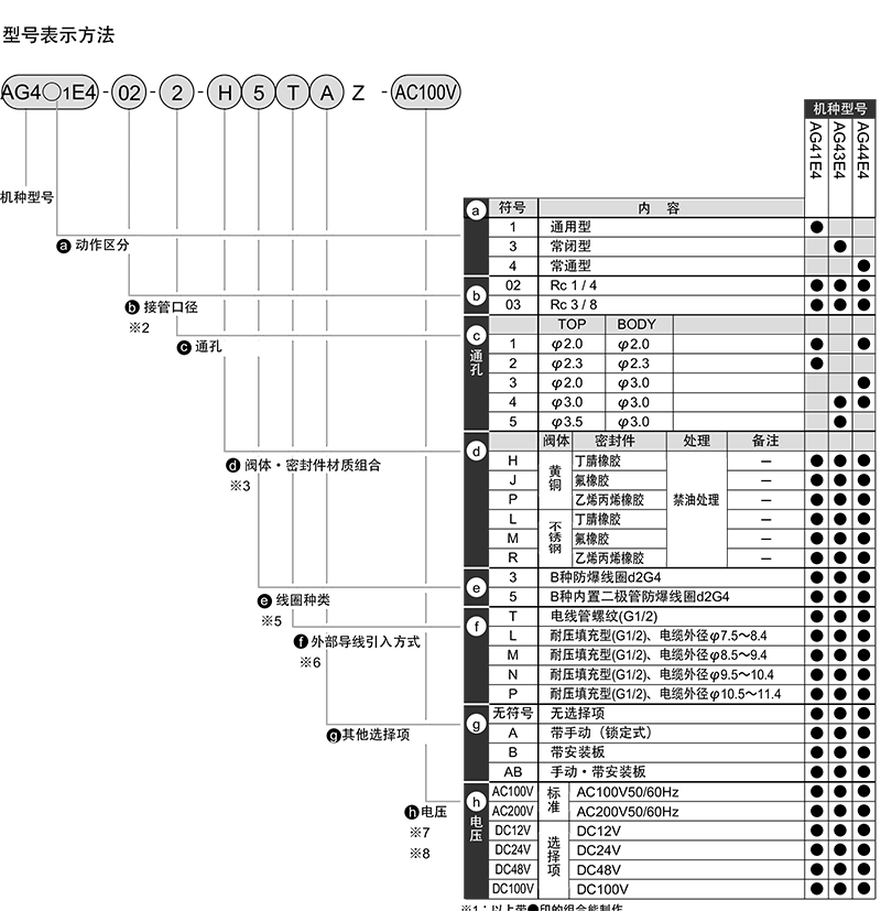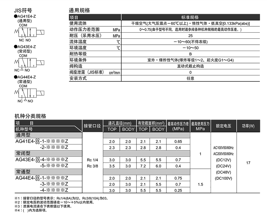 209374/AG43E4-02-4-H3TAZ-AC100V/干燥空气用防爆型 直动式3通电池阀AG43E4-Z系列