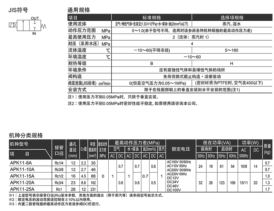 209443/APK11-10A-O2CBGS-AC100V/先导突跳式2通电磁阀APK11系列