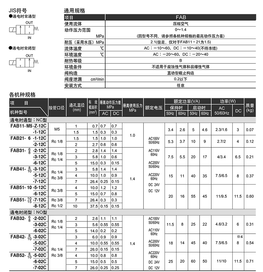 压缩空气用直动式2通电磁阀FAB系列