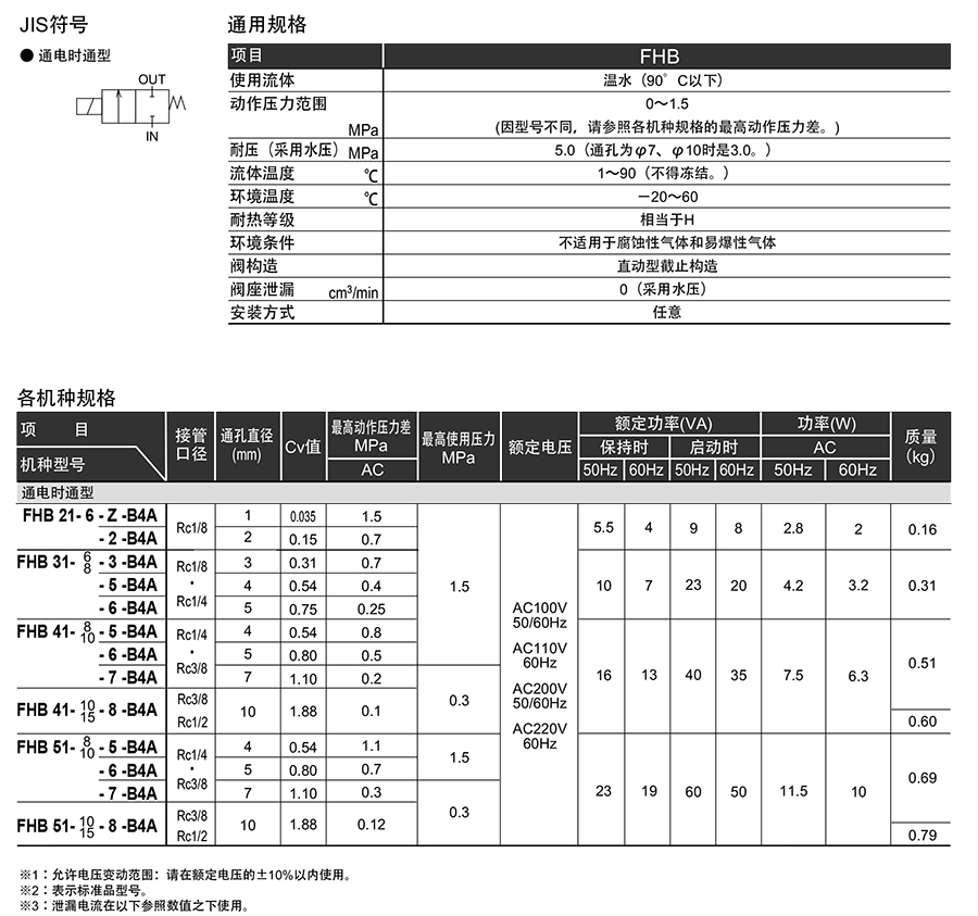 209644/FHB31-8-3-B4AB-1/温水用 直动式2通电磁阀FHB系列