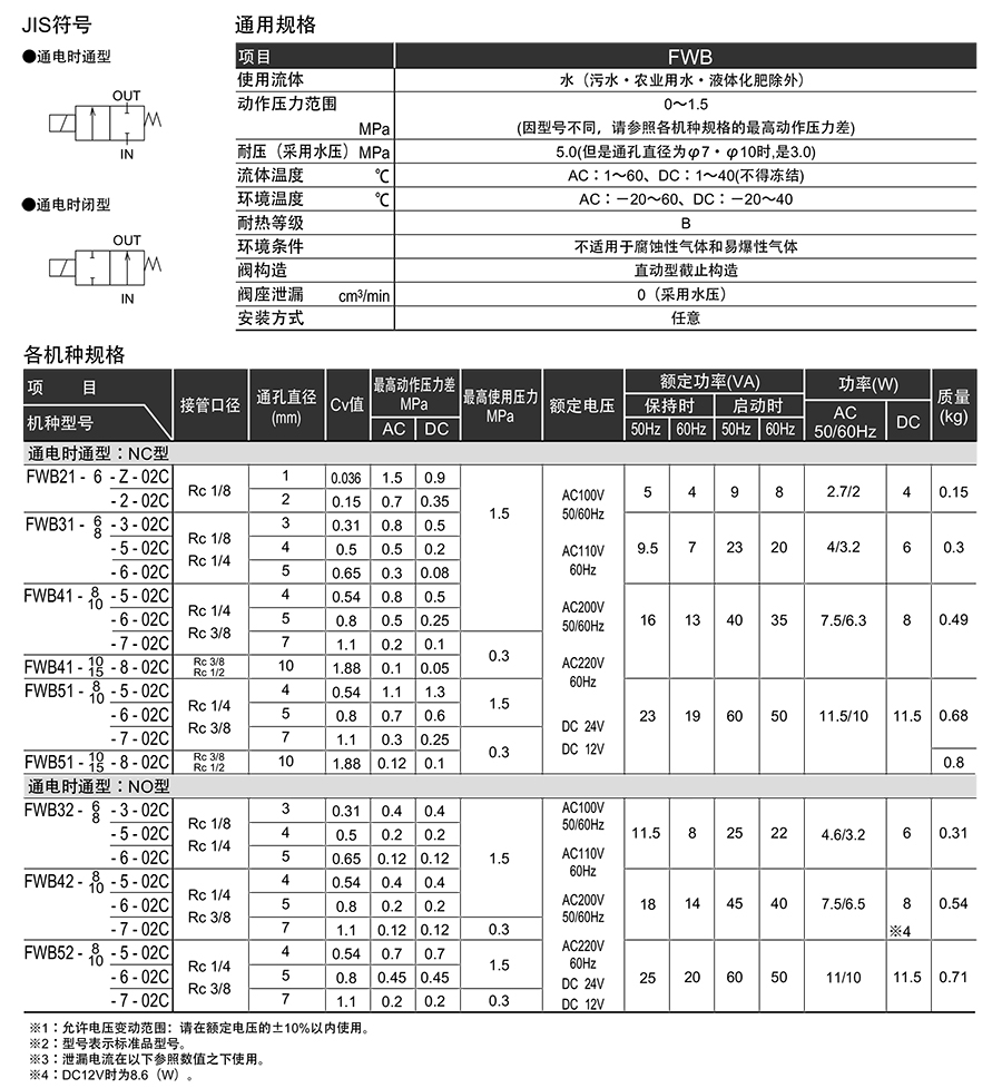 209729/FWB32-6-6-02CB-1/水用 直动式2通电磁阀FWB系列