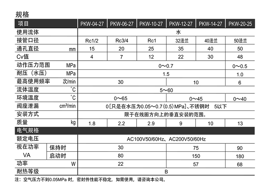 210000/PKW-04-27-C-B-AC100V/水用 先导突跳式2通电磁阀PKW系列