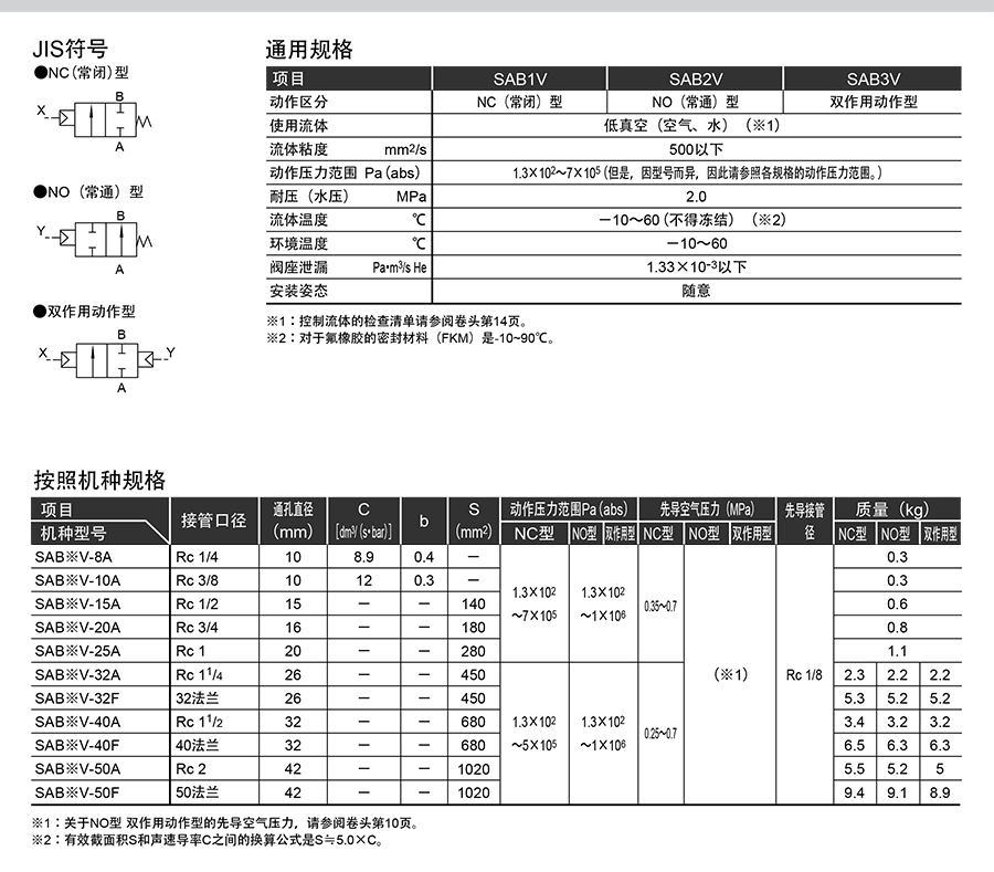 210114/SAB3V-50F-E/气控式2通阀SAB※V系列