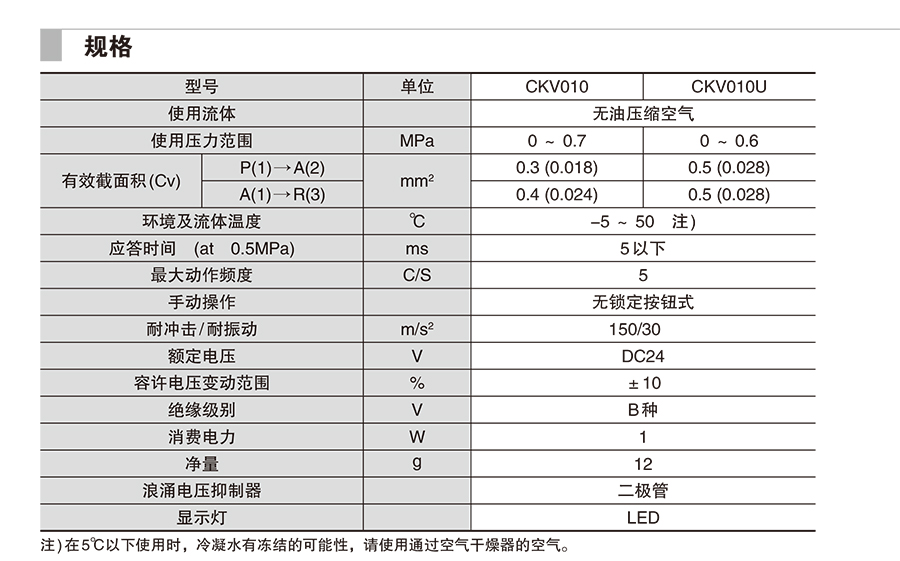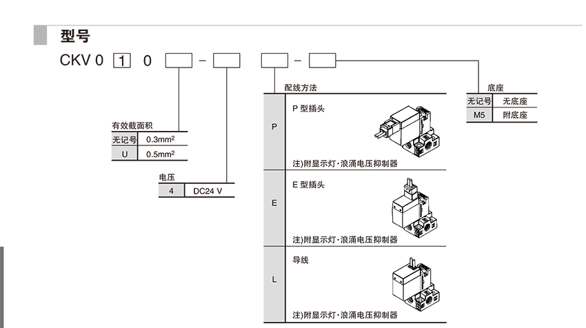 小型3通直动式电磁阀 截止阀密封/底座配管型CKV010系列