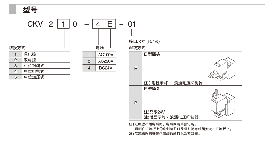 210224/CKV210-4E-01/5通先导式电磁阀CKV200系列