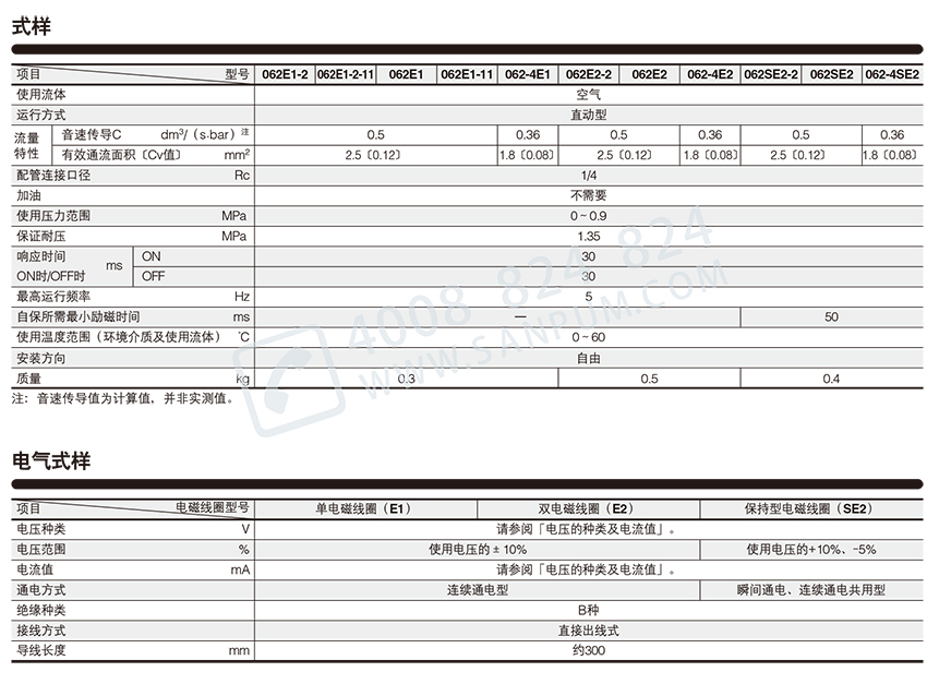 210281/062SE2-2-21-AC100V/直动型电磁阀062系列