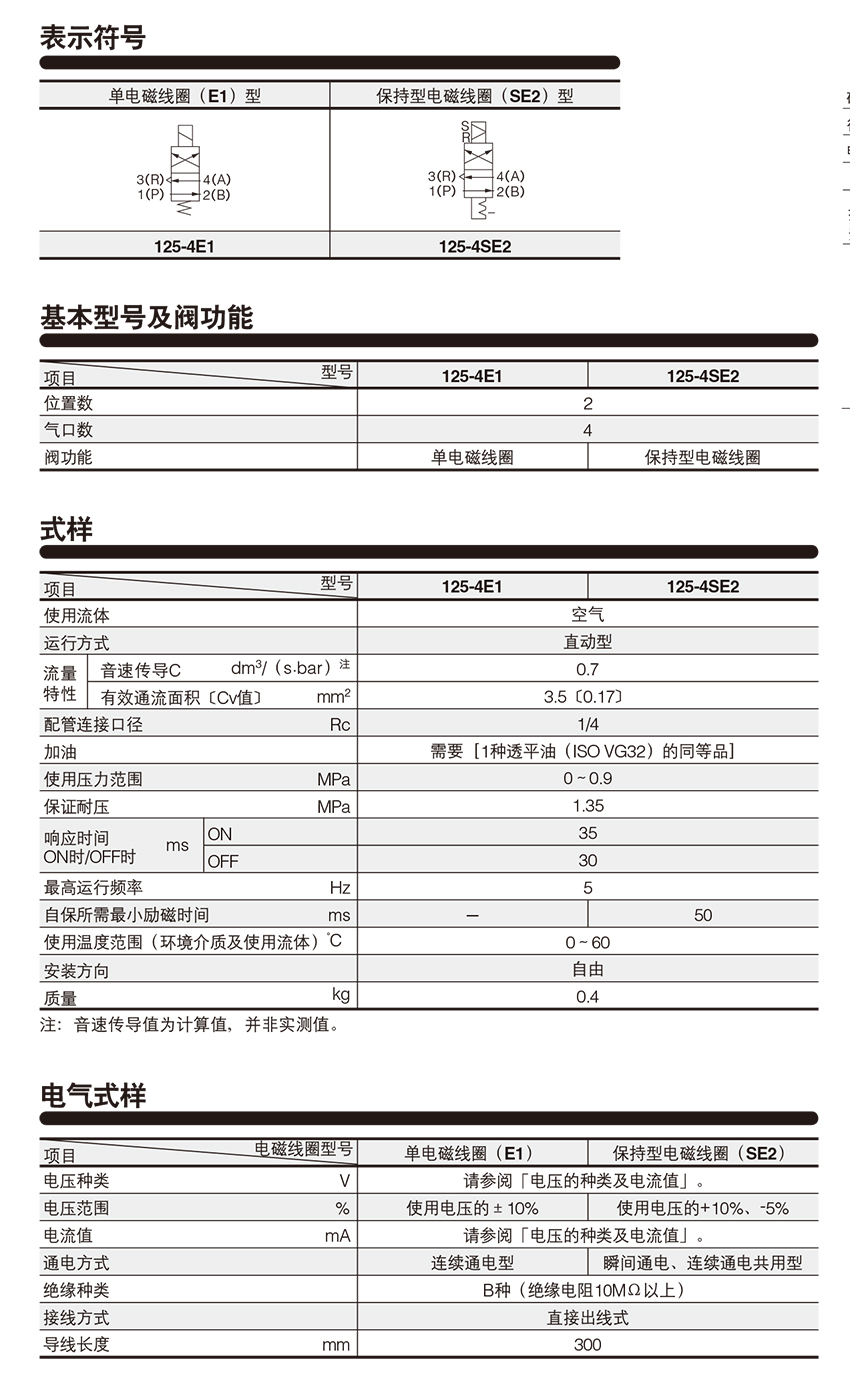 210287/125-4SE2-21-AC100V/直动型4气口电磁阀125系列