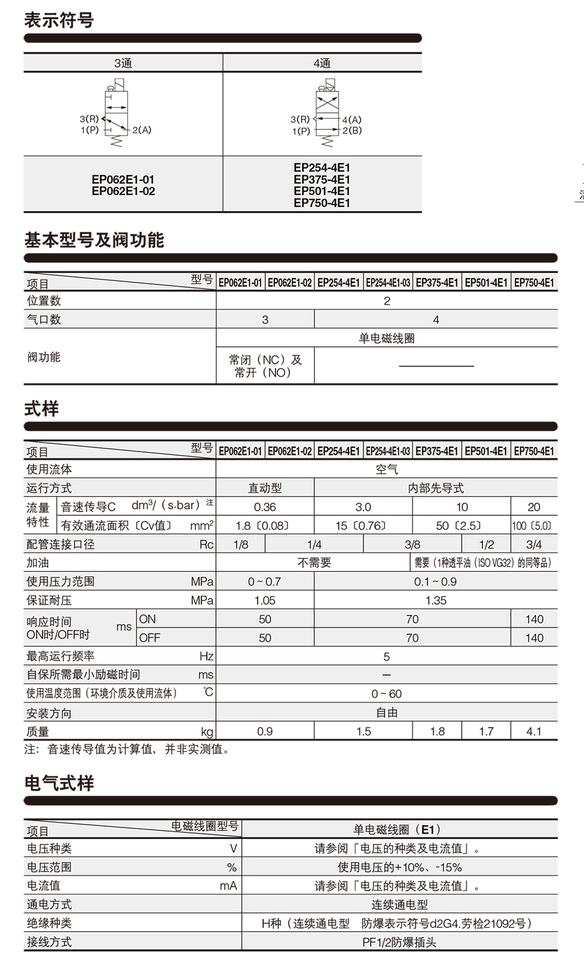 210360/EP375-4E1-AC100V/防爆型 内部先导式电磁阀EP375系列