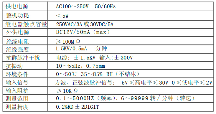 高性能的进口芯片为主控处理器,采用多重滤波及防干扰电路,操作简单,性价比极高;按键设定参数、6位LED数码管显示;带输出回差设定,提高仪表及系统工作的稳定性;一表多用:通过软件选择可分别当频率表、转速表、线速表使用;测量精度高,软件可选带三位小数显示;输入输出光电隔离,抗干扰能力极强;可选购带4~20mA变送输出及带RS485通迅功能.
