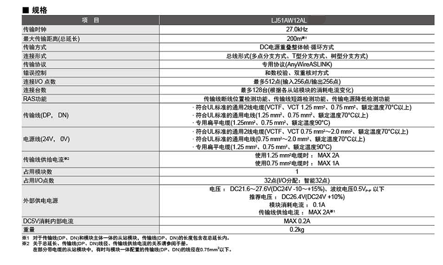211392/LJ51AW12AL/L系列AnyWireASLINK主模块