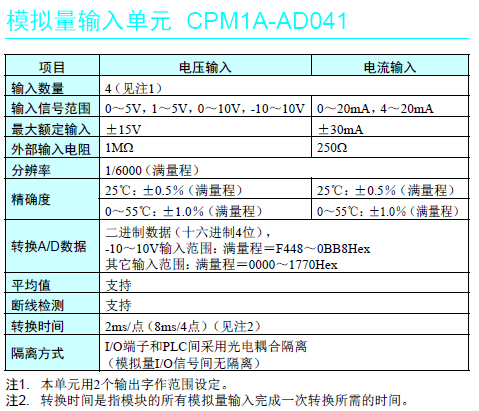 211571/CPM1A-AD041/CPM2A/2AH系列模拟量输入模块