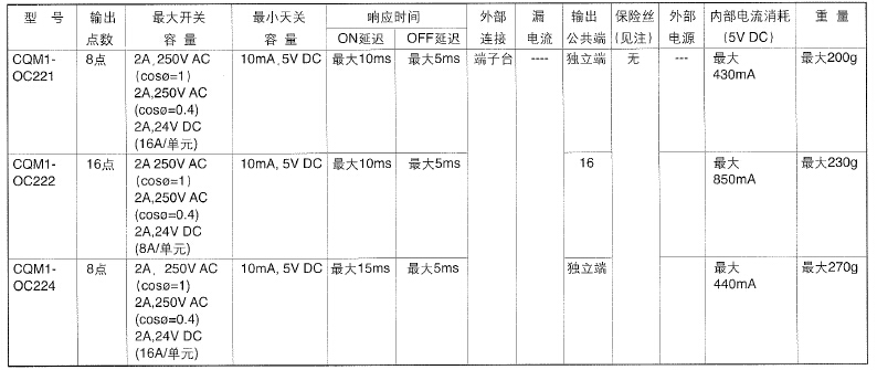 211641/CQM1-OC222/CQM1H系列接触器输出模块