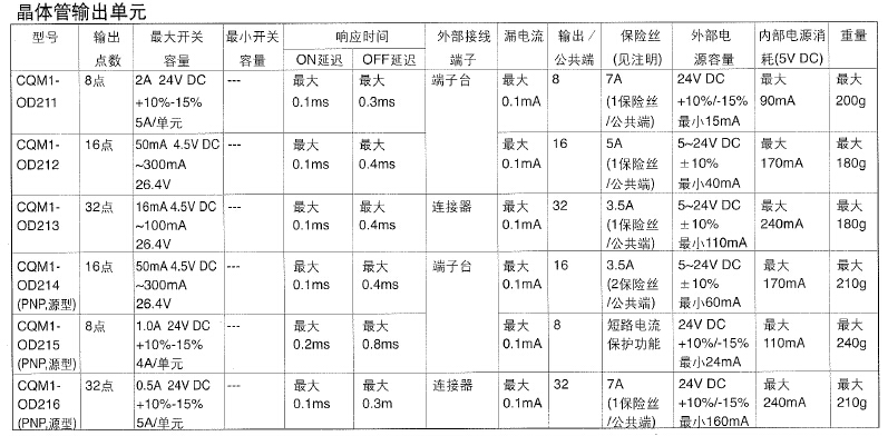 211645/CQM1-OD213/CQM1H系列晶体管输出模块