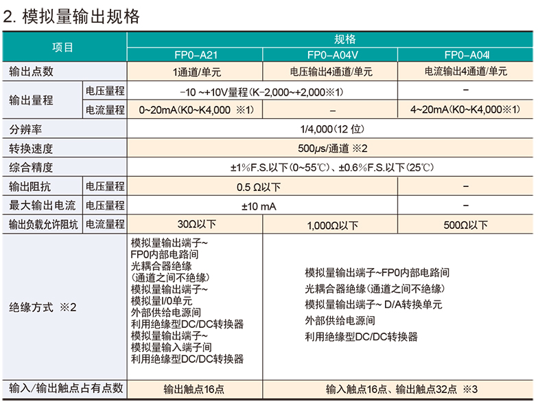 211752/FPO-A04I/FP0R系列模拟量输出模块