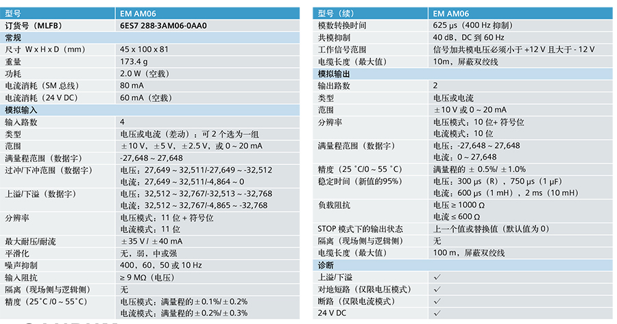 211841/EM AM06/S7-200 SMART系列模拟量输入输出混合模块