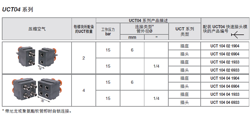 213543/UCT-104-02-6933/压缩空气用UCT04快速接头