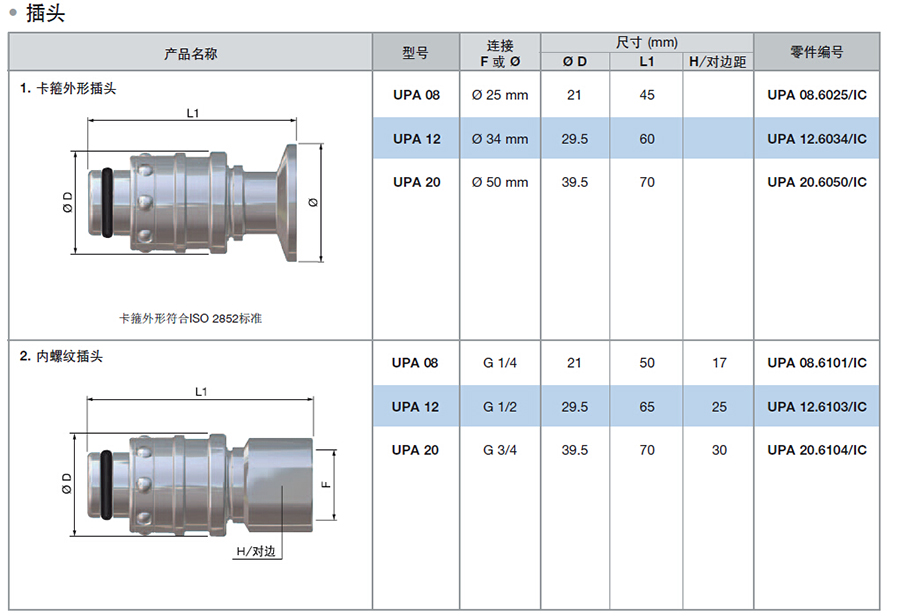 213688/UPA 20.6050/IC/全流体用 不锈钢材质UPA快速接头