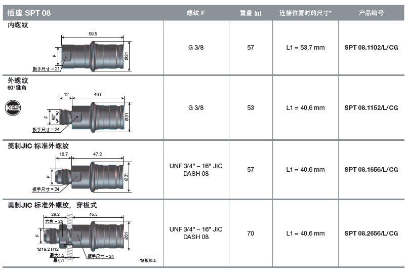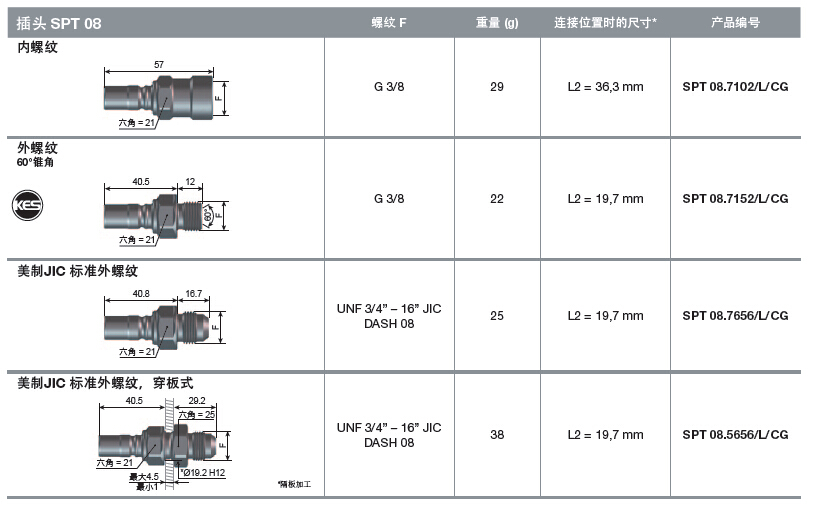 213757/SPT 08.2656/L/CG/冷却和温度控制 SPT08快速接头